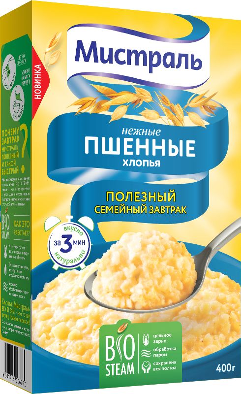 Читать все статьиХлопья Пшенные нежные 400г 1*12 МИСТРАЛЬ/66127