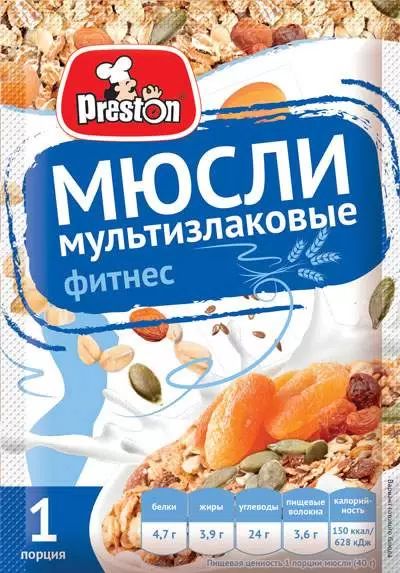 Читать все статьиМюсли Фитнес мультизлаковые PRESTON 40гр 1*15 М58076