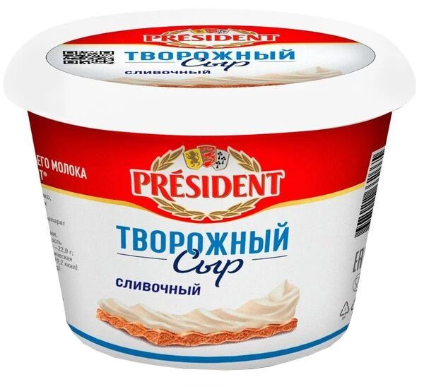 Читать все статьиСыр творожный сливочный 56% 140г 1*8 President