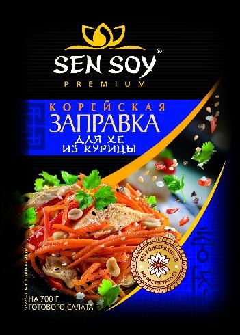 Приготовить салат «Хе» из курицы с заправкой от «Sen Soy Premium» просто: не нужно вымерять пропорции ингредиентов специального маринада, достаточно мелко порезать курицу и овощи, замариновать в нашей заправке и через час можно подавать к обеду или на праздничный стол готовый остреиький корейский салат – закуску. С этой заправкой легко разнообразить привычное домашнее меню. Вот так просто, быстро и экономично.